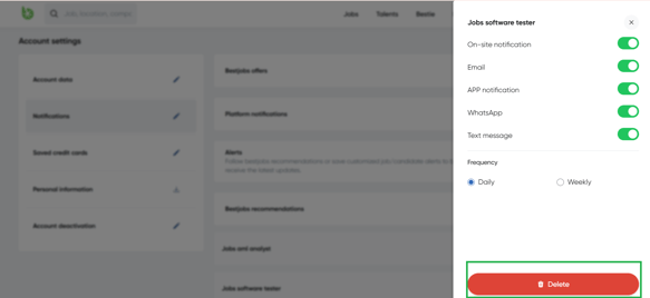 The new job alert can be activated or deactivated by following the steps below: