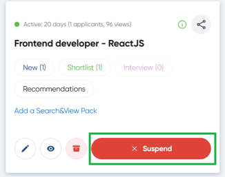 - Locate the job posting you wish to suspend.