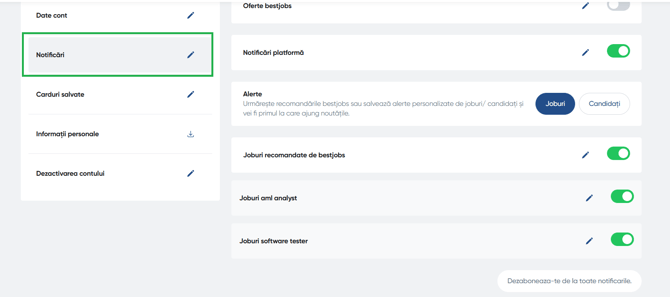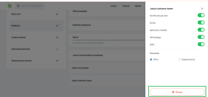 Noua alertă de locuri de muncă poate fi activată sau dezactivată urmând pașii de mai jos: