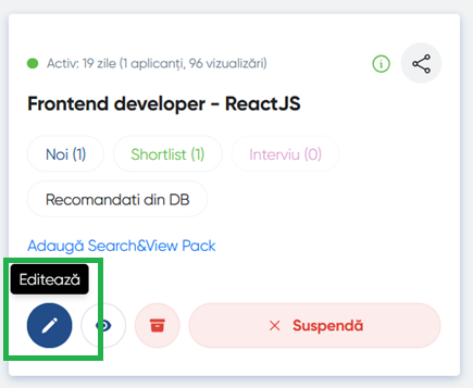 - Selectare job: Identifică jobul pe care dorești să îl modifici și apasă pe iconița Editează de pe cardul jobului.